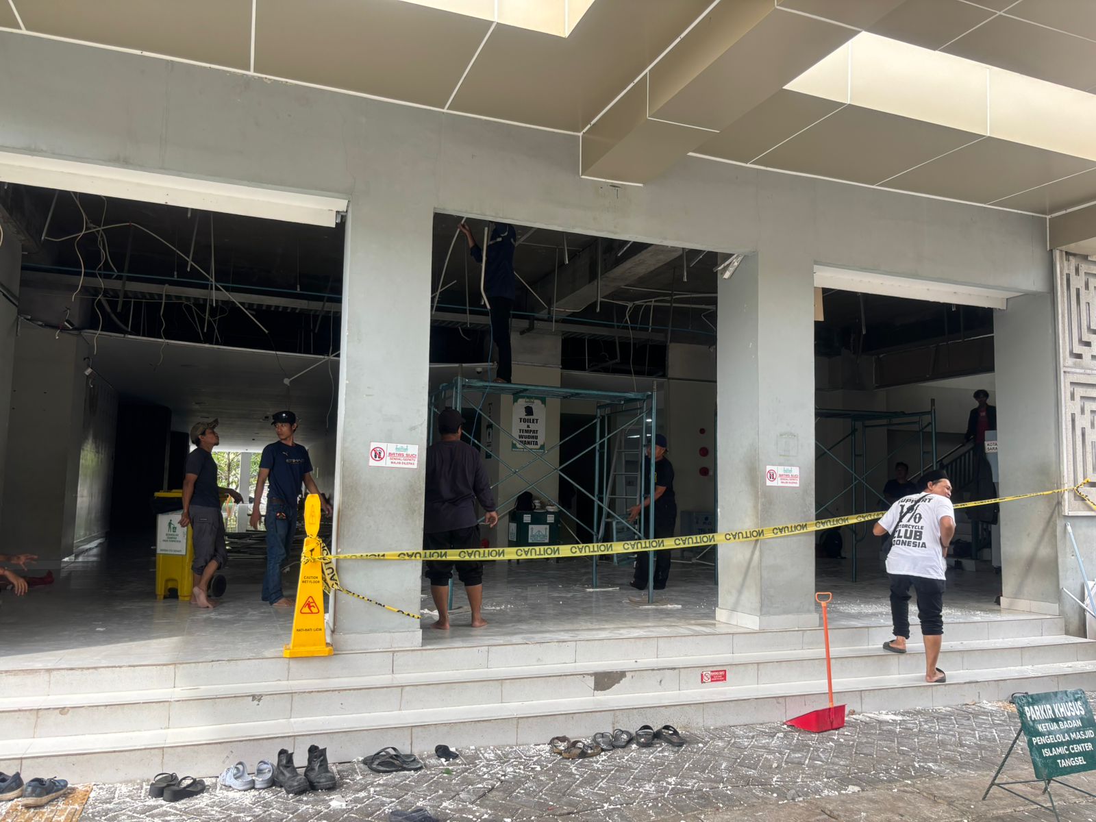 Pantauan Tangselife di lokasi, sejumlah orang masih melakukan pembersihan material bangunan roboh. Sementara petugas sudah mulai berdatangan untuk melakukan perbaikan bangunan yang mengalami kerusakan.