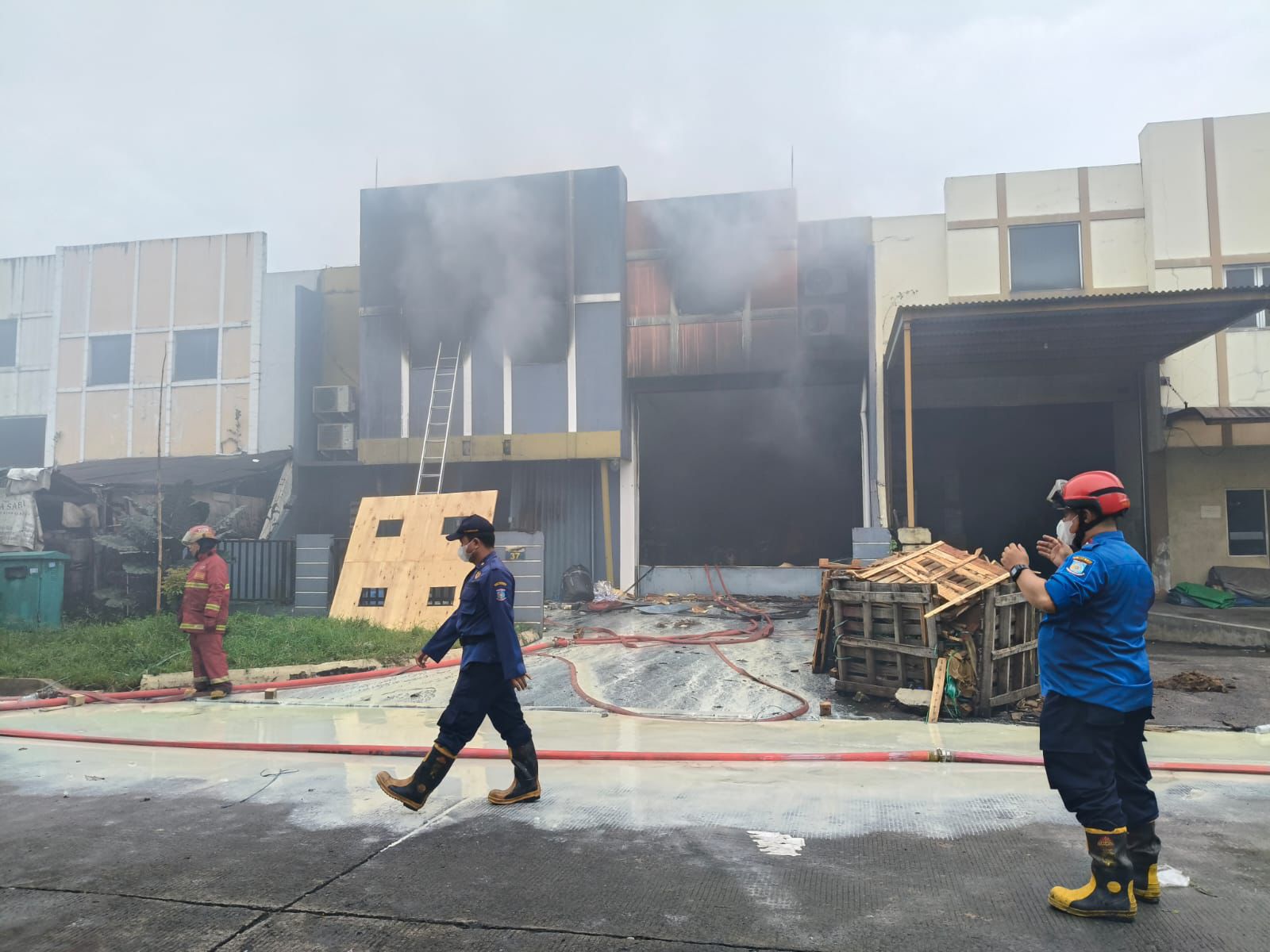 Banyaknya bahan kimia di lokasi kejadian membuat kobaran api sulit untuk dipadamkan.