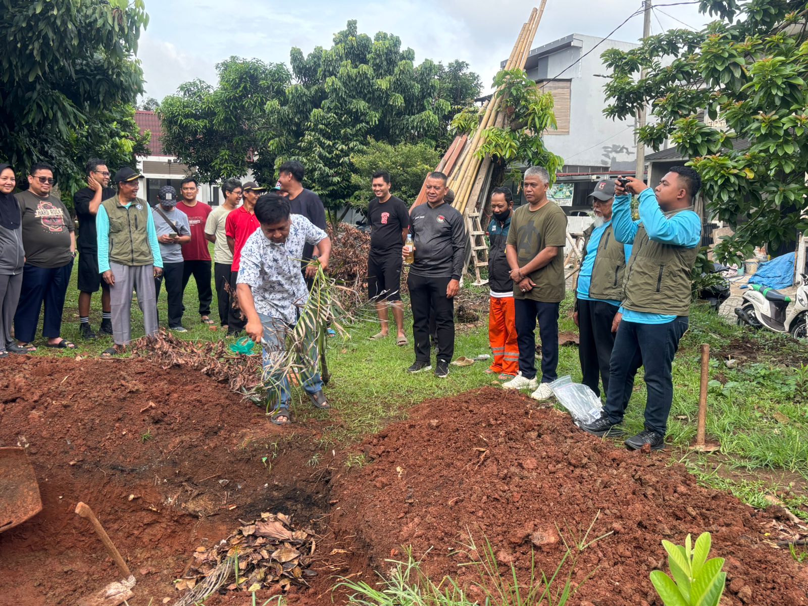 TANGSELIFE.COM – Warga RW 23 Kelurahan Jombang, Kecamatan Ciputat, Kota Tangerang Selatan (Tangsel), bergotong royong membuat lubang teba komposter sebagai upaya pengelolaan sampah organik rumah tangga secara mandiri.