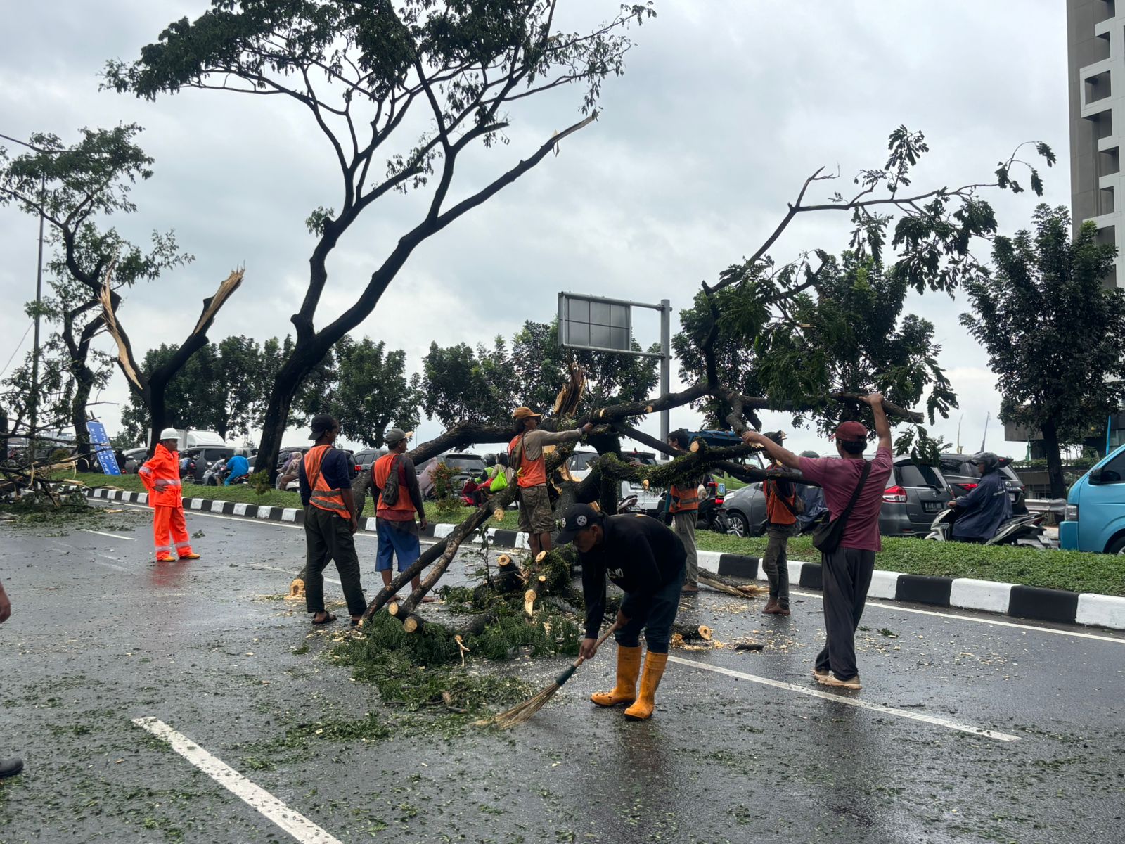 Salah satu titik pohon tumbang di Tangsel terjadi di jalan Lingkar Timur, Kelurahan Rawa Mekar Jaya, Kecamatan Serpong.