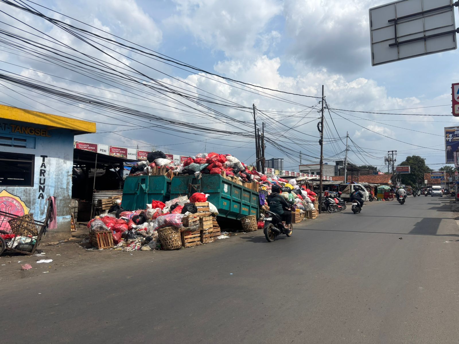 Kondisi serupa juga terjadi di Pasar Serpong. Sampah yang berserakan bahkan hingga menutup satu ruas jalan.