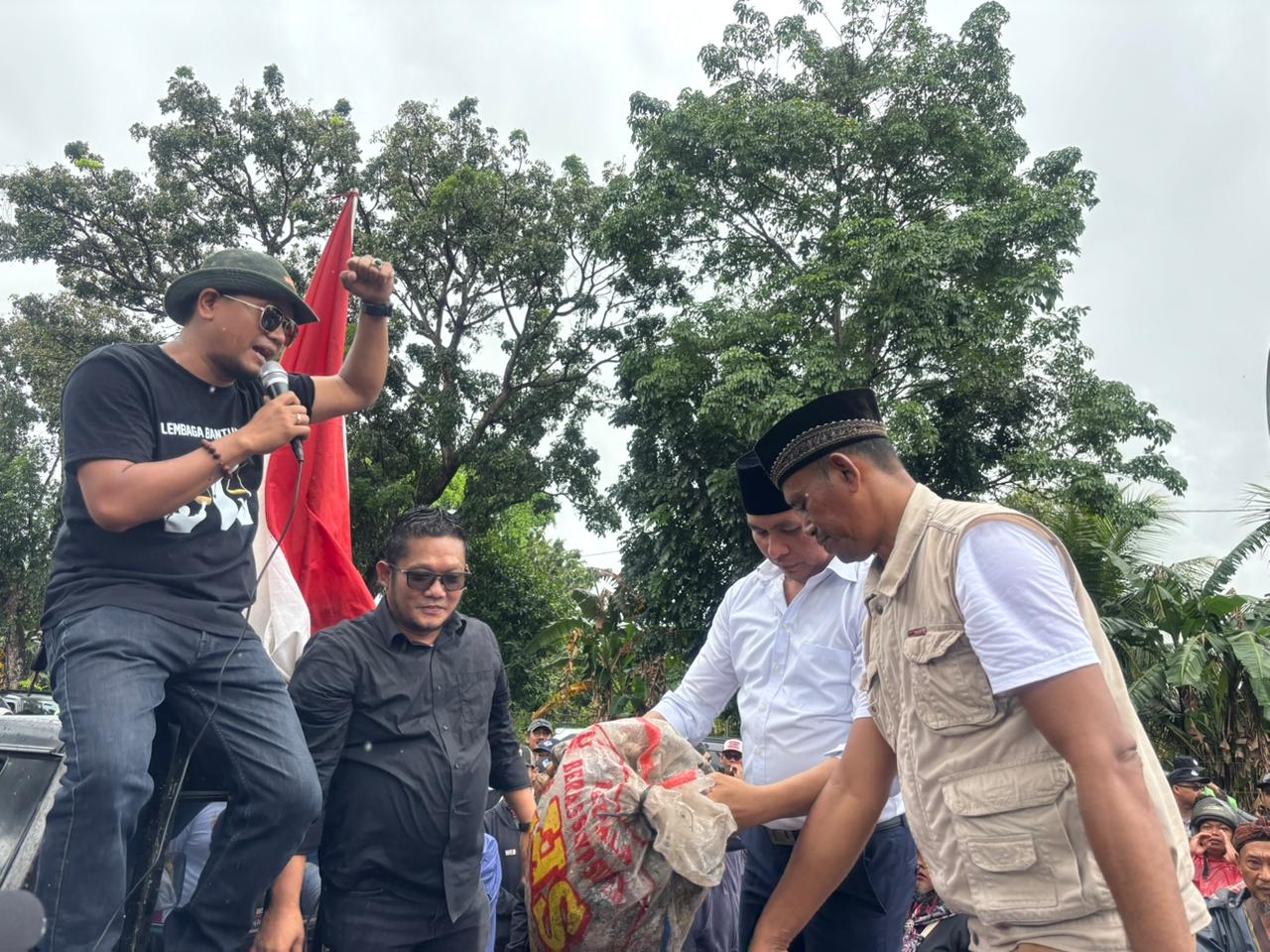 Melalui pengeras suara dari mobil komando, warga minta pemerintah kota (Pemkot) Tangsel untuk mengelola sampah secara serius.