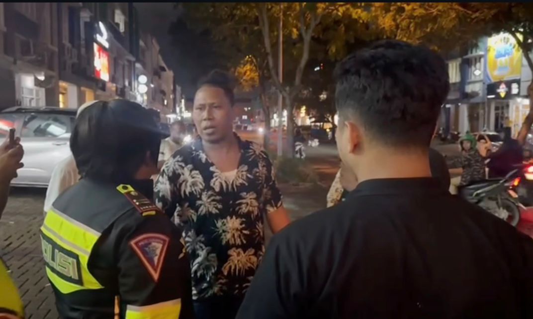 Dalam rekaman itu tampak seorang matel yang menggunakan kemeja hitam bercorak putih marah-marah sambil menunjuk-nunjuk Polisi yang berada di lokasi.